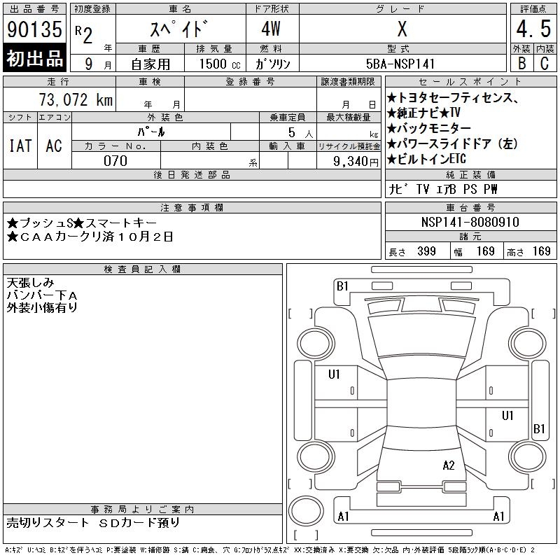 TOYOTA SPADE X - лот 90135