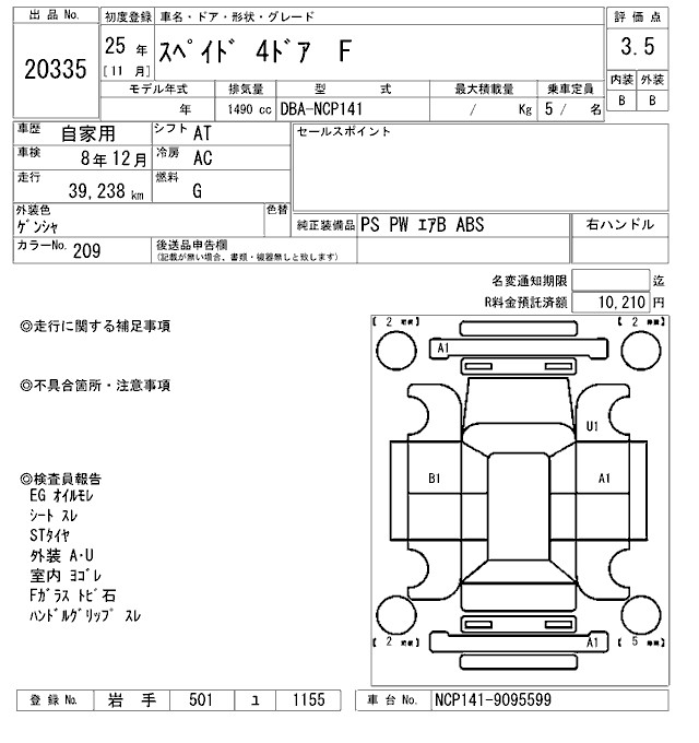 TOYOTA SPADE F - лот 20335