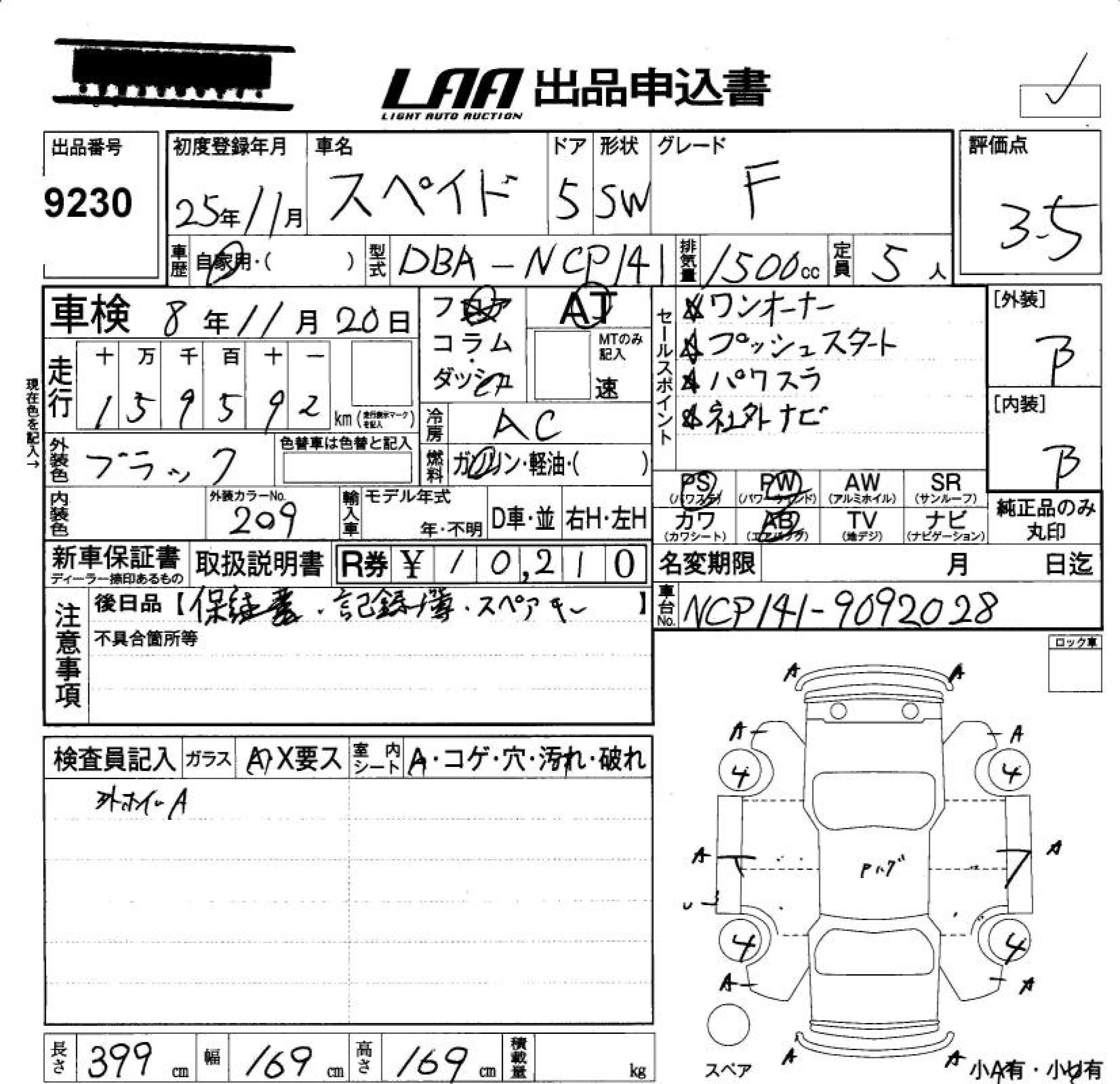 TOYOTA SPADE F - лот 9230