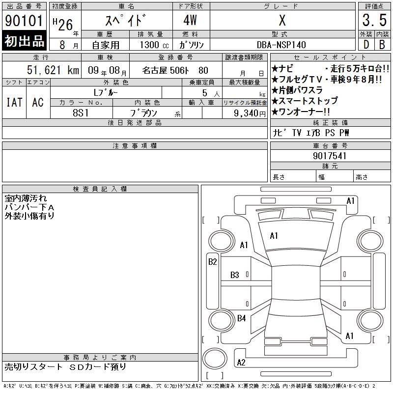 TOYOTA SPADE X - лот 90101
