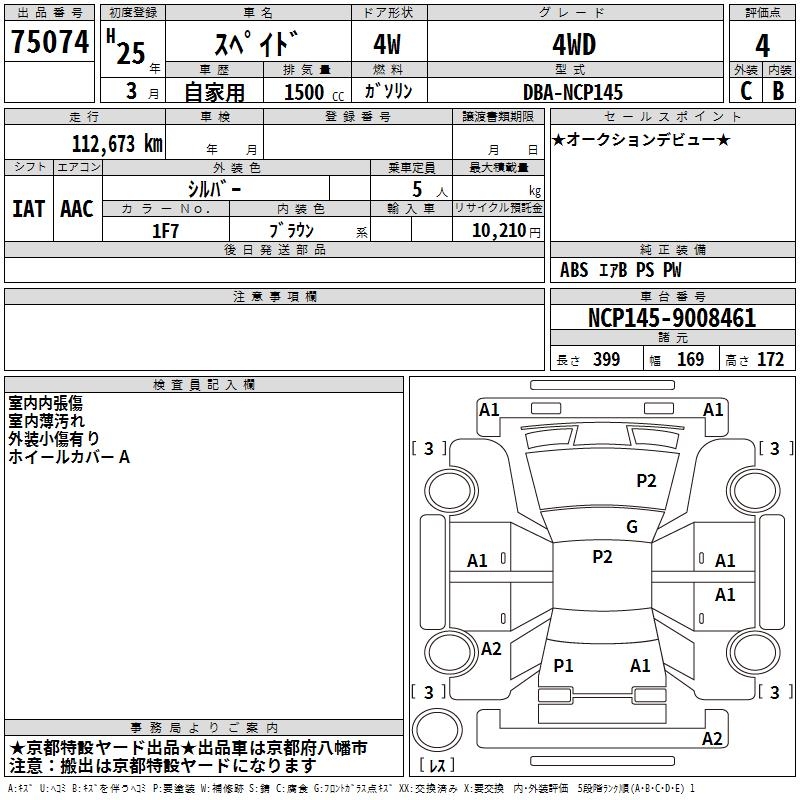 Оборудование: PS P 2 подушки безопасности ABS депозит уплачен 10,210 иен