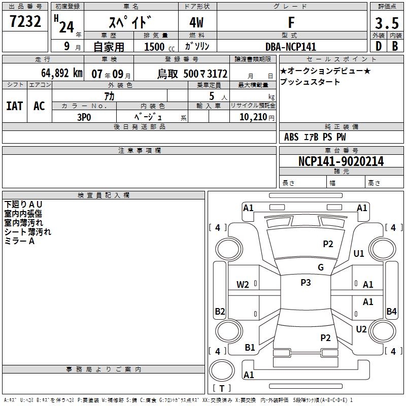 Оборудование: PS P 2 подушки безопасности ABS депозит уплачен 10,210 иен