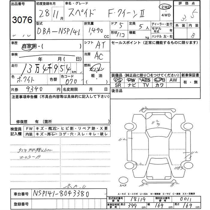 TOYOTA SPADE - лот 3076