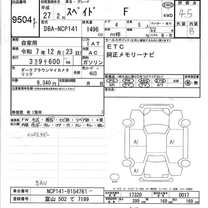 TOYOTA SPADE - лот 9504