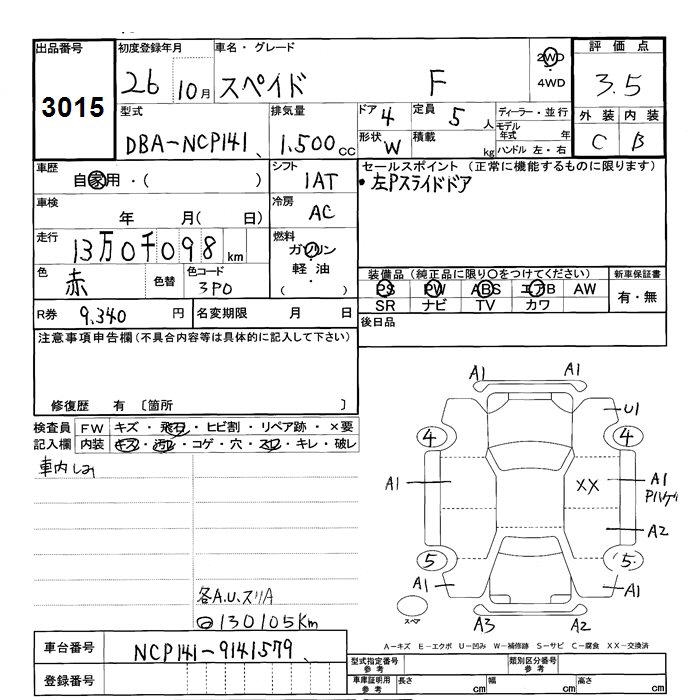 TOYOTA SPADE - лот 3015