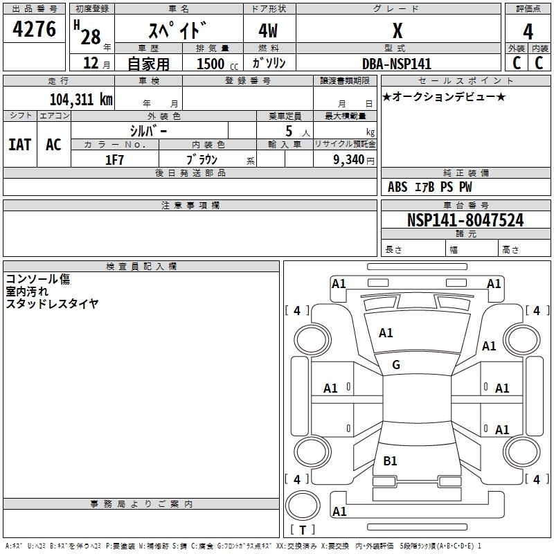 TOYOTA SPADE - лот 4276