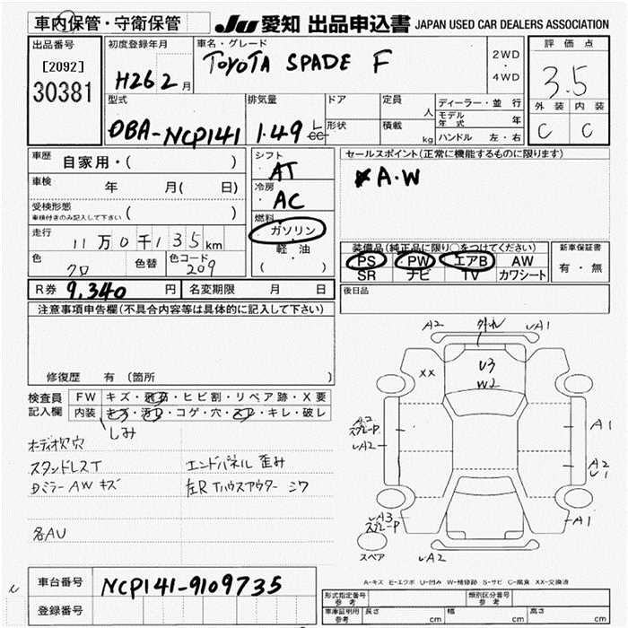 TOYOTA SPADE - лот 30381