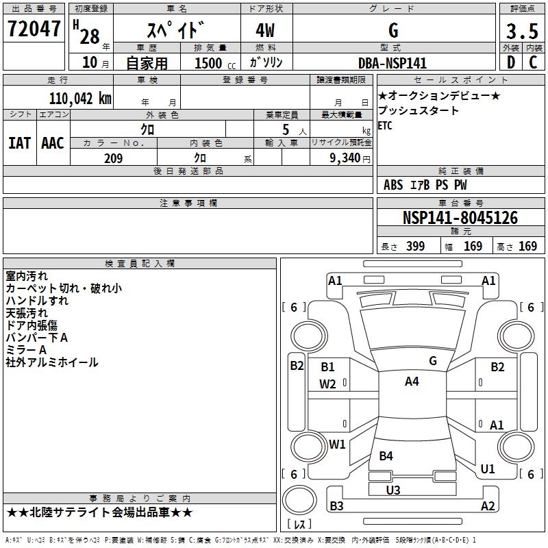 TOYOTA SPADE - лот 72047