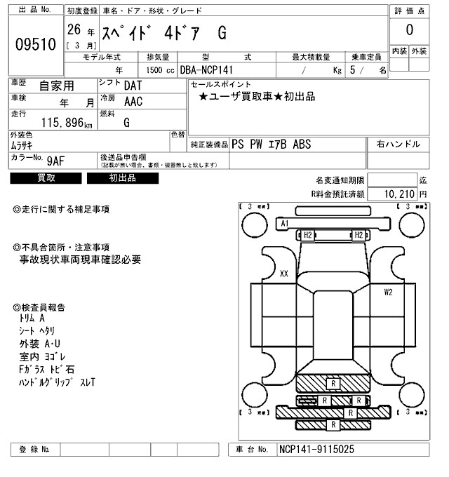 TOYOTA SPADE - лот 9510