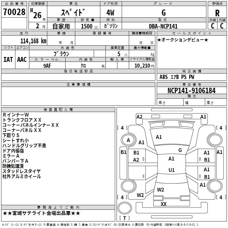 TOYOTA SPADE G - лот 70028