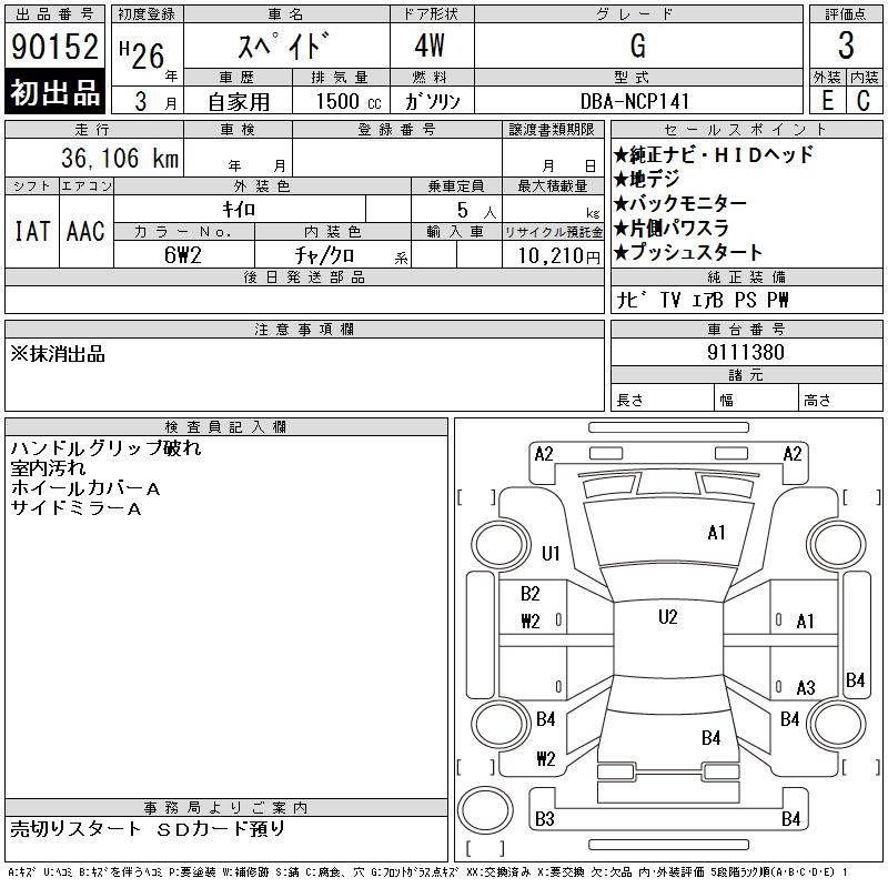 TOYOTA SPADE G - лот 90152
