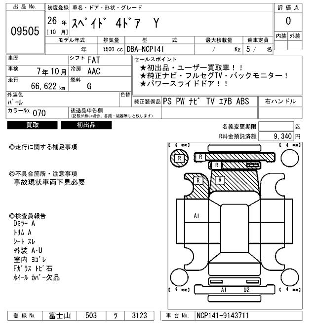 TOYOTA SPADE Y - лот 9505