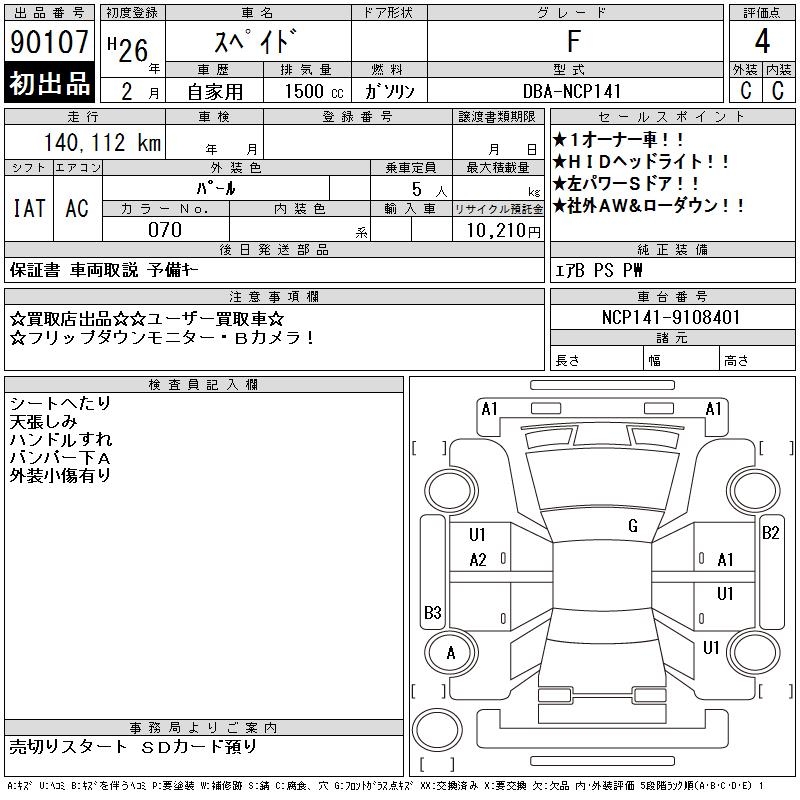 TOYOTA SPADE F - лот 90107