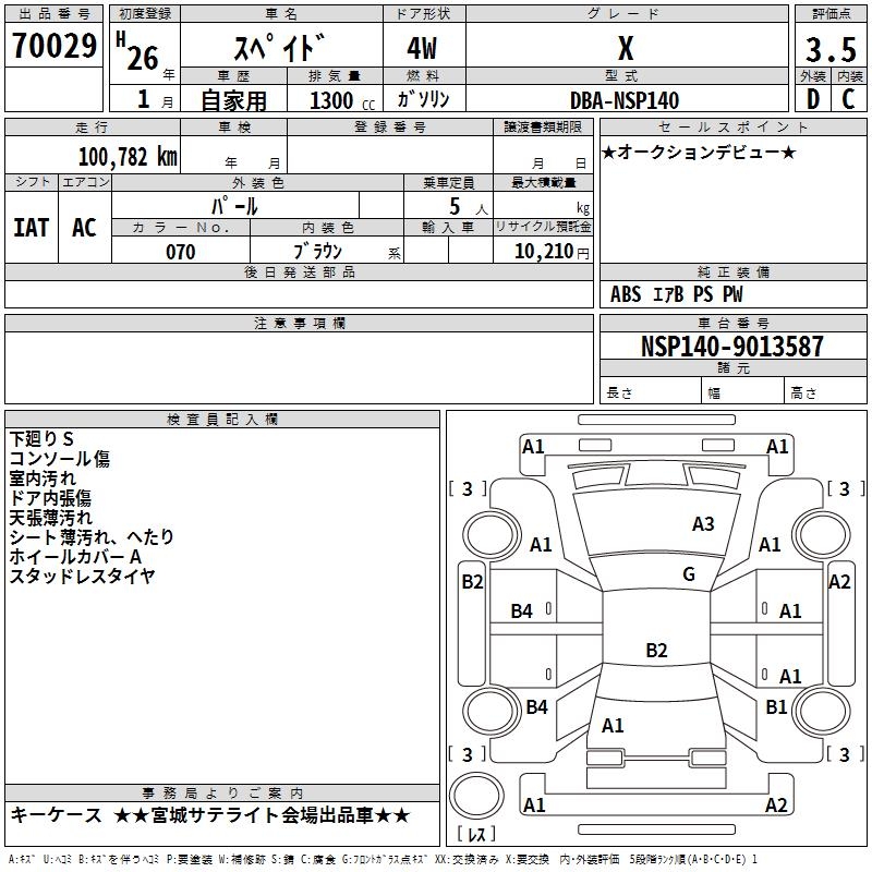 TOYOTA SPADE X - лот 70029