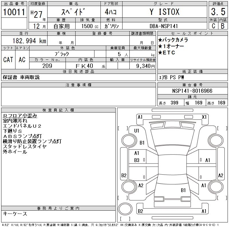 TOYOTA SPADE Y ISTOX - лот 10011