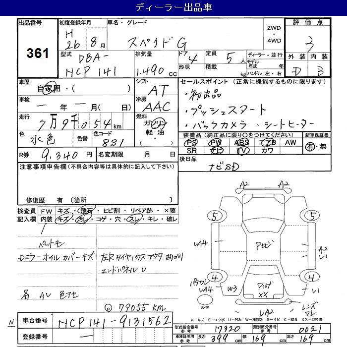 TOYOTA SPADE G - лот 361