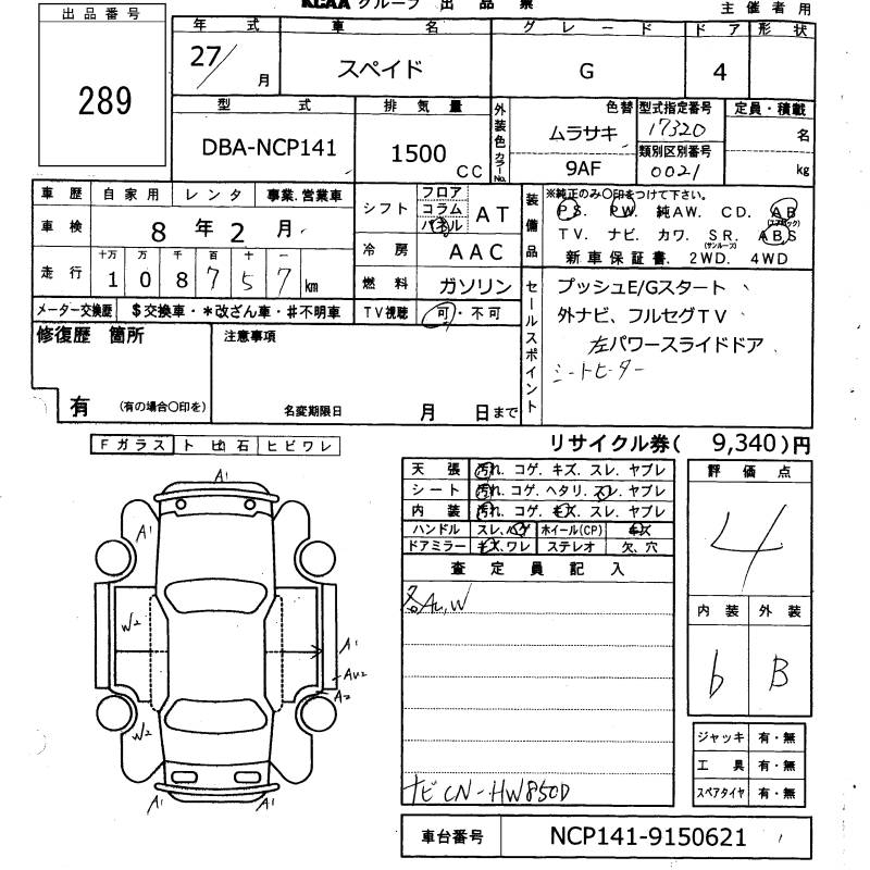 TOYOTA SPADE G - лот 289
