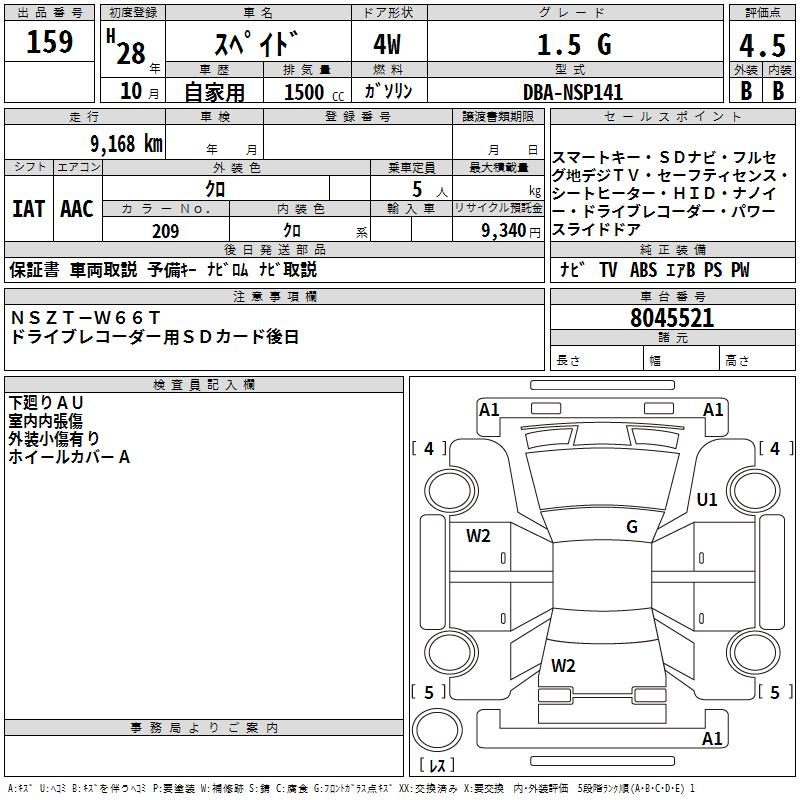 TOYOTA SPADE 1.5 G - лот 159