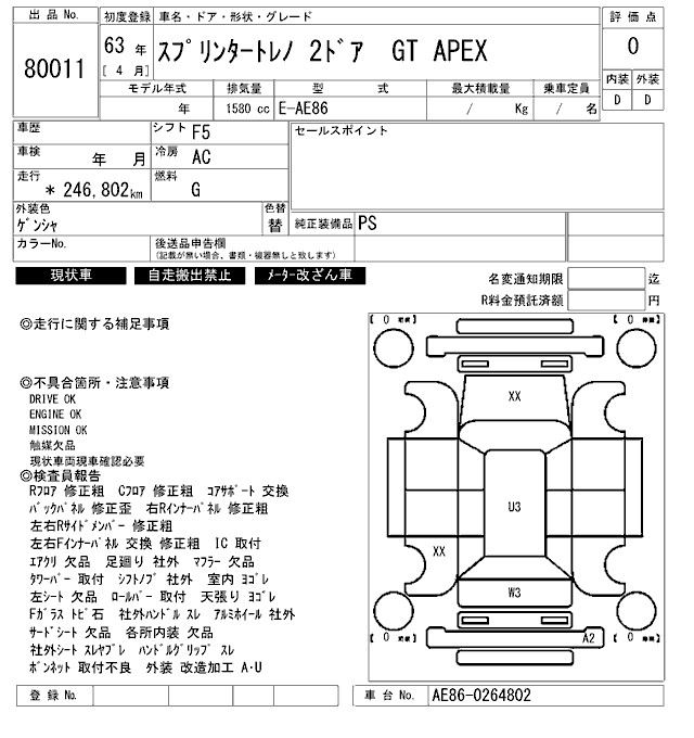 TOYOTA SPRINTER TRUENO - лот 80011