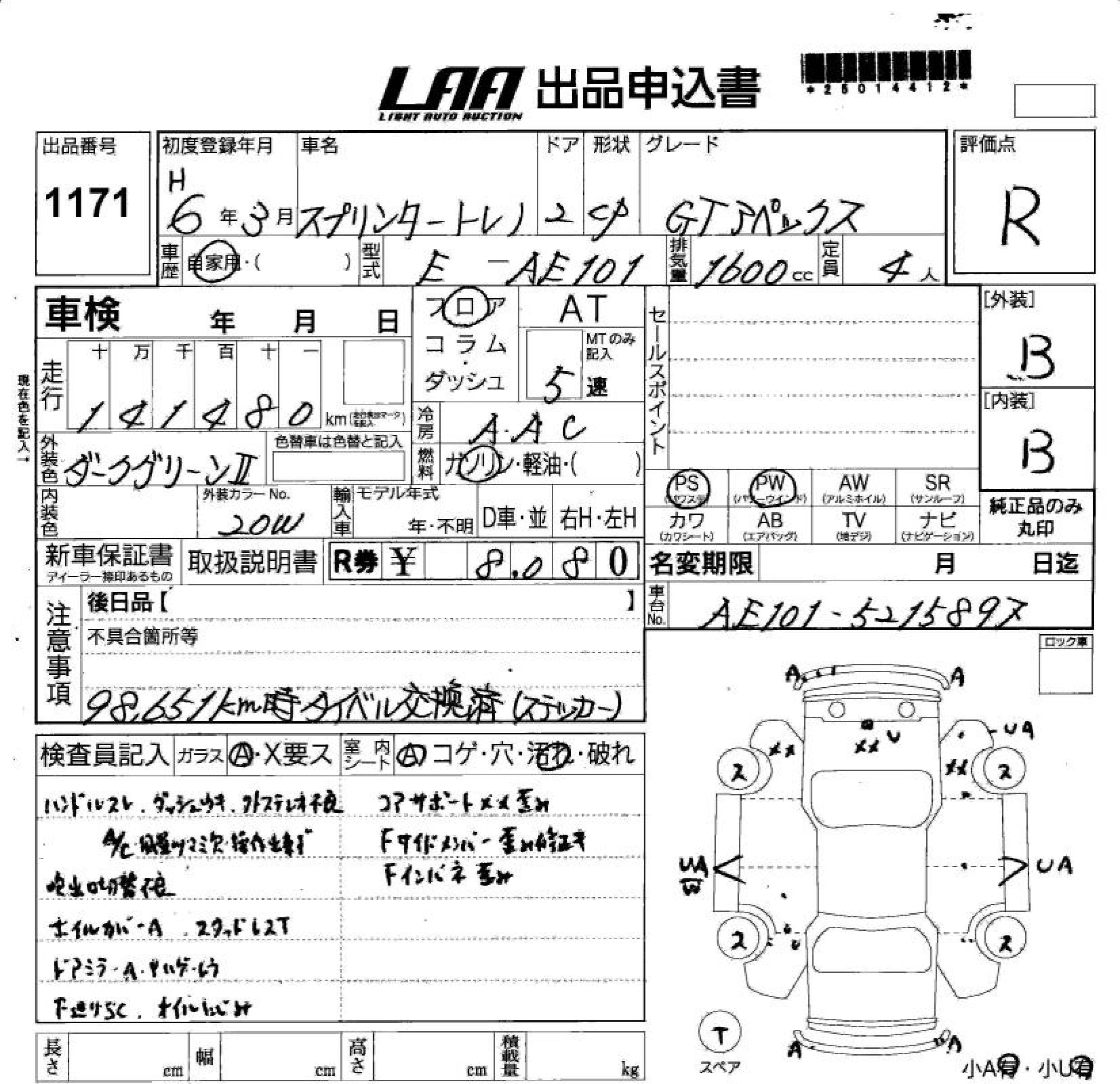 TOYOTA SPRINTER TRUENO - лот 1171