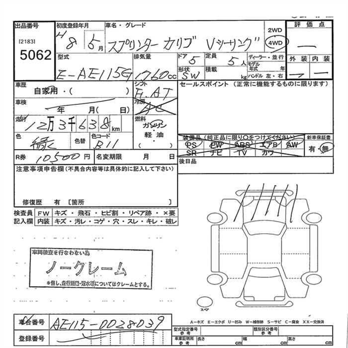 TOYOTA SPRINTER CARIB 4WD V TOURING - лот 5062
