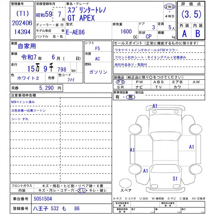 Все аукционы TOYOTA SPRINTER TRUENO