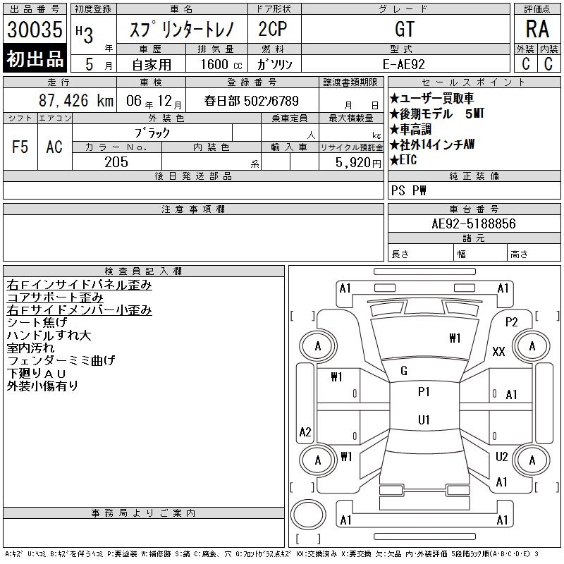 TOYOTA SPRINTER TRUENO - лот 30035