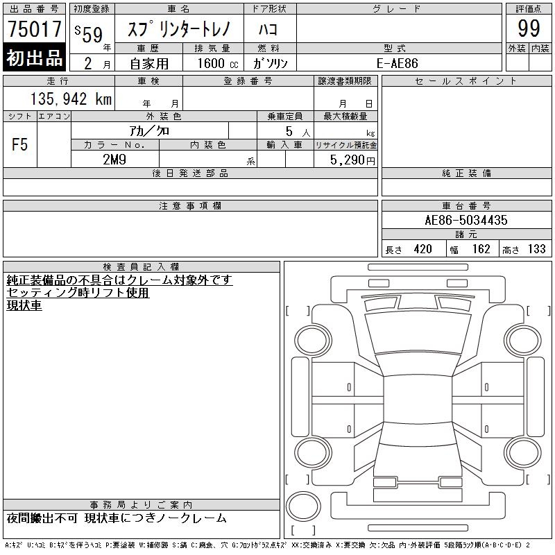 TOYOTA SPRINTER TRUENO - лот 75017