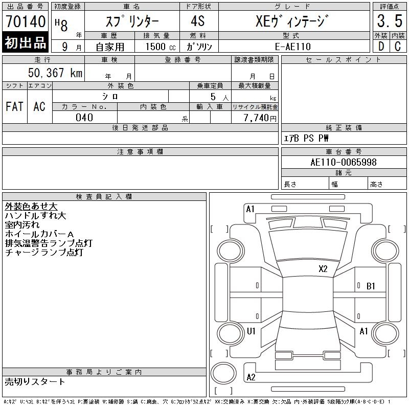 TOYOTA SPRINTER XE VINTAGE - лот 70140