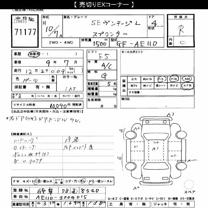 Все аукционы TOYOTA SPRINTER