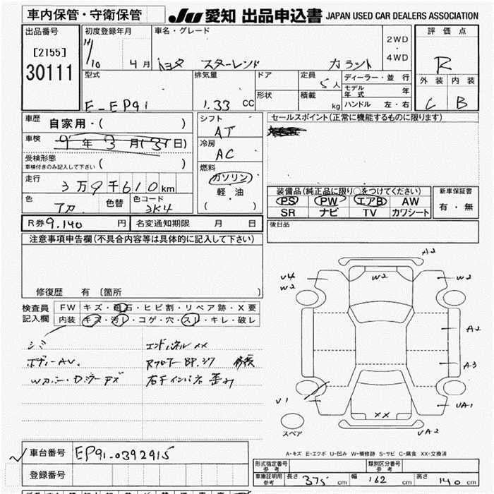 TOYOTA STARLET - лот 30111