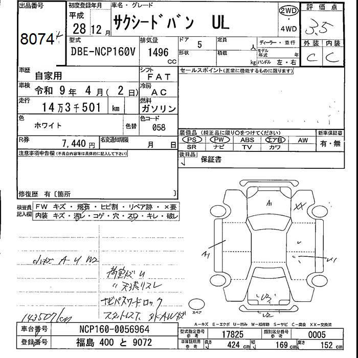 TOYOTA SUCCEED VAN - лот 8074