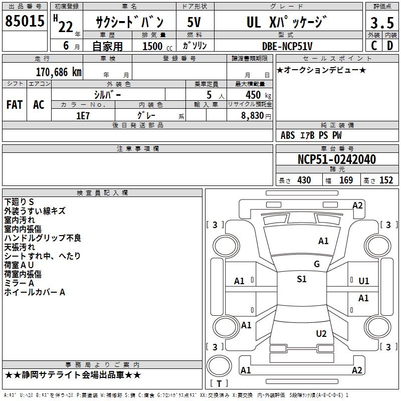 TOYOTA SUCCEED VAN UL X PACKAGE - лот 85015