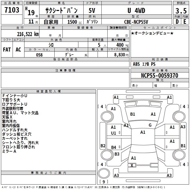 TOYOTA SUCCEED VAN U 4WD - лот 7103