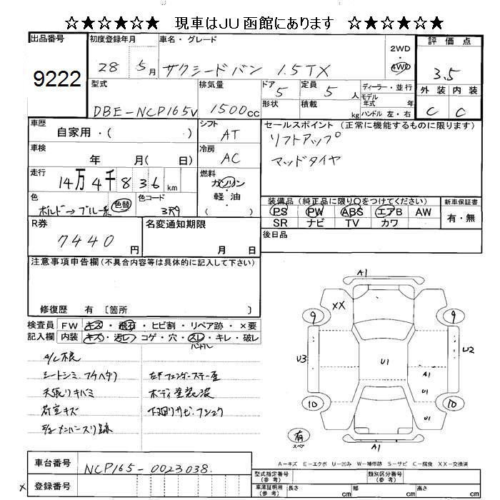 TOYOTA SUCCEED VAN 4WD TX - лот 9222