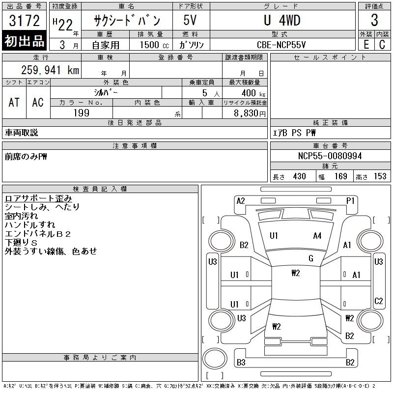TOYOTA SUCCEED VAN U 4WD - лот 3172