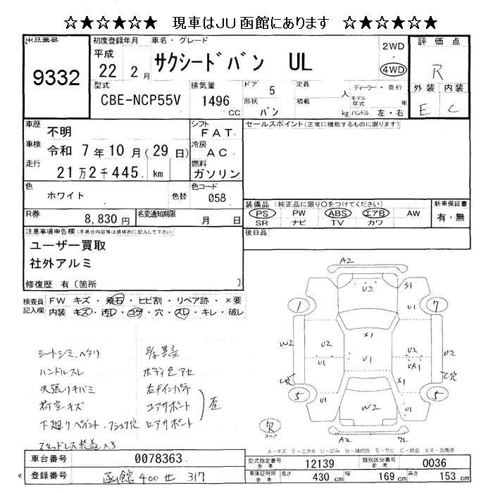 TOYOTA SUCCEED VAN 4WD UL - лот 9332