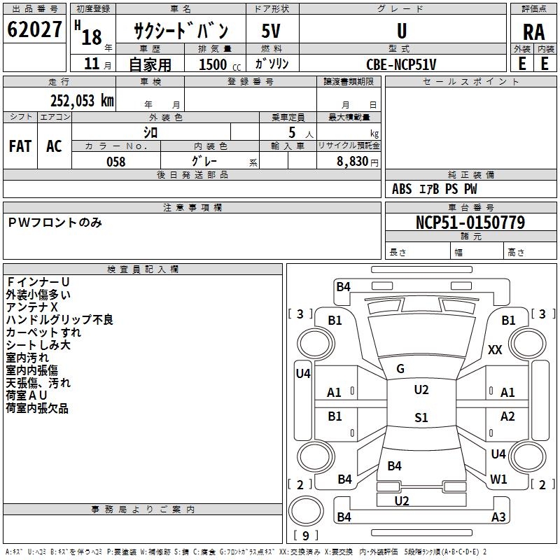 TOYOTA SUCCEED VAN - лот 62027