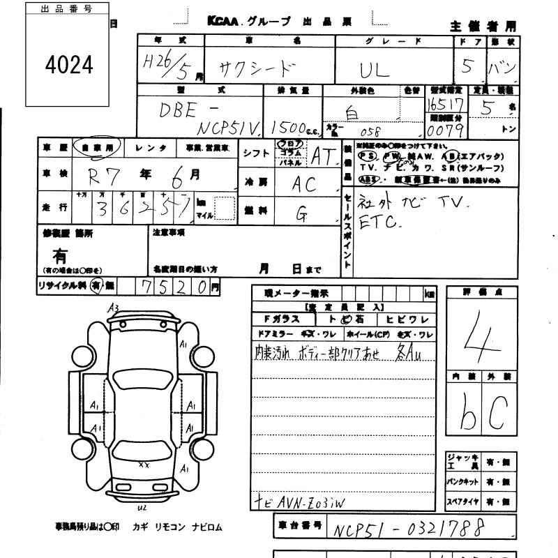 TOYOTA SUCCEED VAN - лот 4024