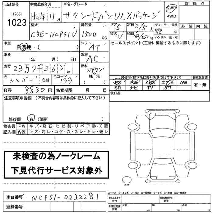 TOYOTA SUCCEED VAN - лот 1023