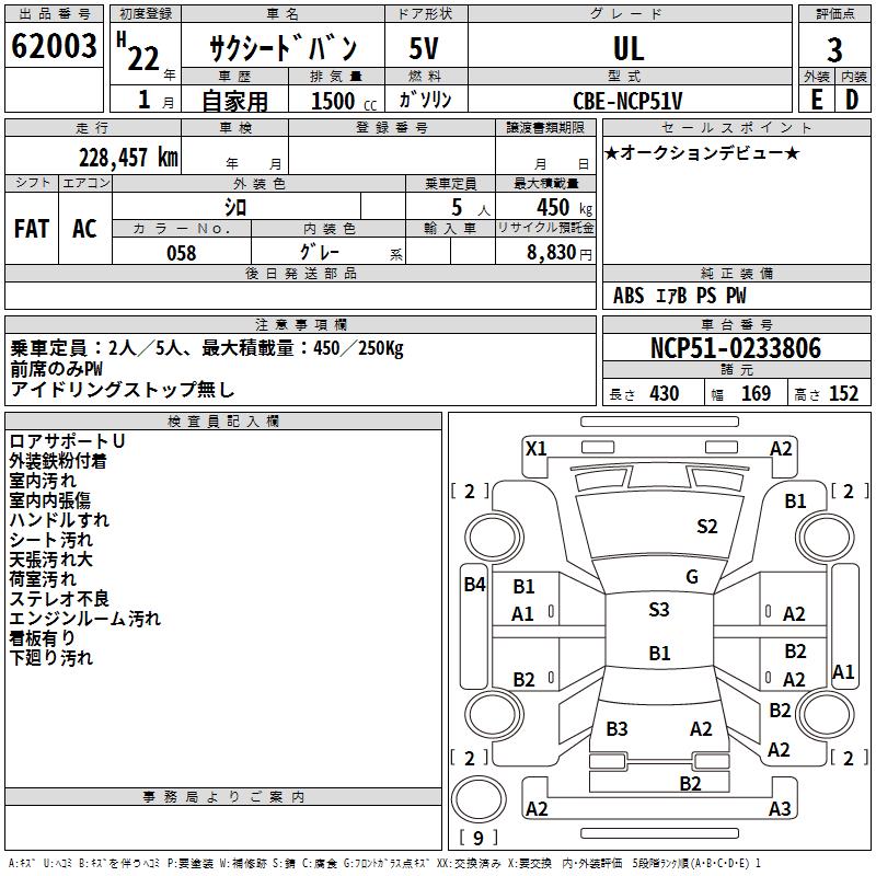 TOYOTA SUCCEED VAN - лот 62003