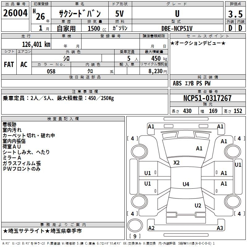 TOYOTA SUCCEED VAN U - лот 26004