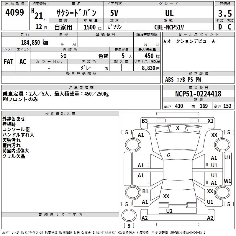 TOYOTA SUCCEED VAN UL - лот 4099