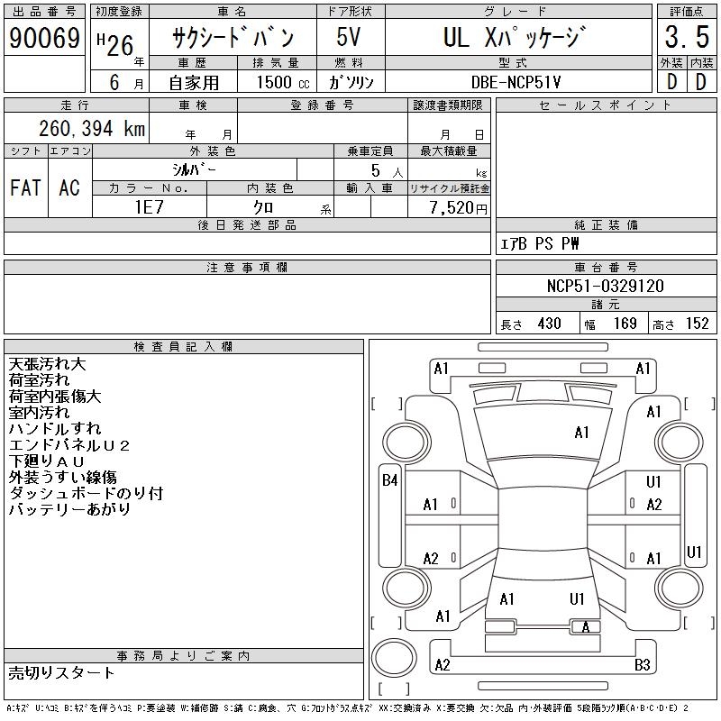 TOYOTA SUCCEED VAN UL X PACKAGE - лот 90069