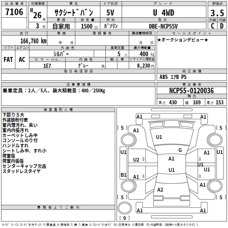TOYOTA SUCCEED VAN U 4WD - лот 7106