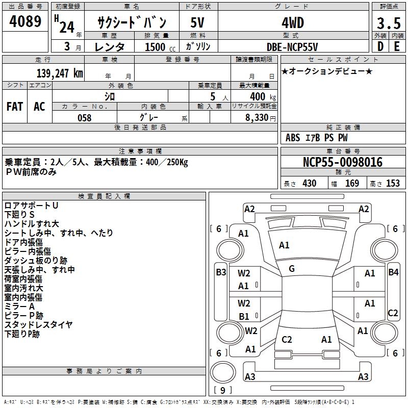 TOYOTA SUCCEED VAN 4WD - лот 4089