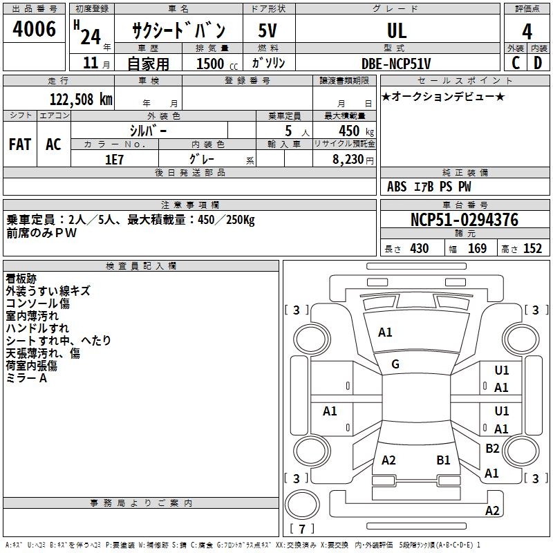 TOYOTA SUCCEED VAN UL - лот 4006