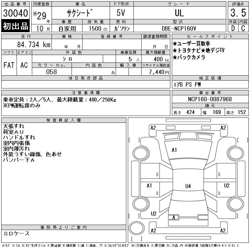 TOYOTA SUCCEED WAGON UL - лот 30040