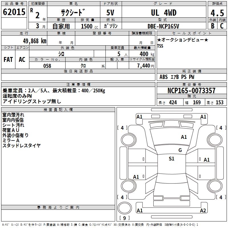 TOYOTA SUCCEED WAGON UL 4WD - лот 62015