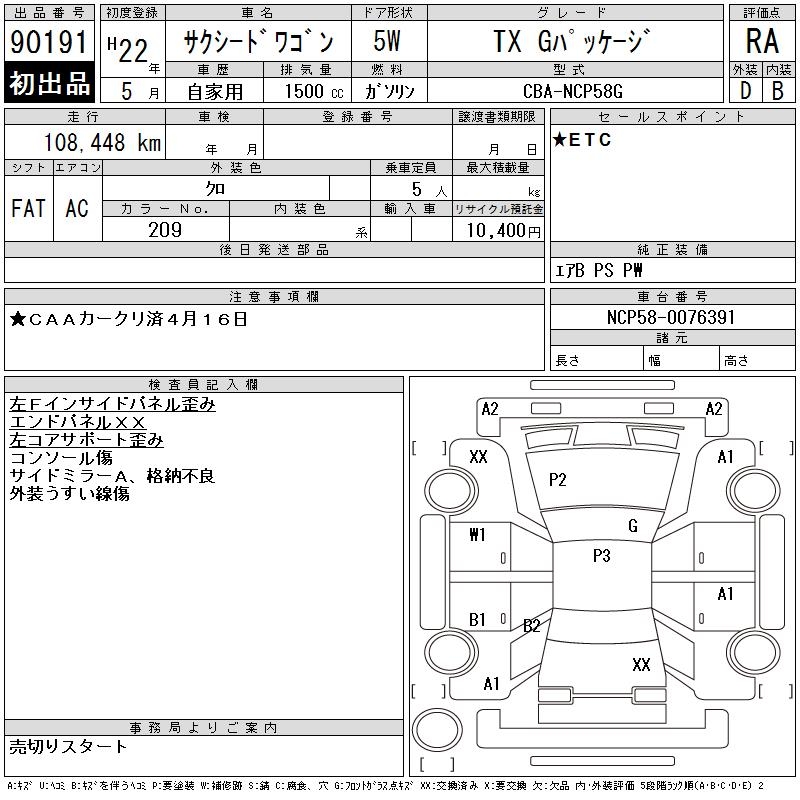 TOYOTA SUCCEED WAGON TX G PACKAGE - лот 90191